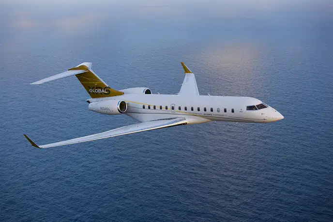 A large business jet with a spacious cabin and excellent range
