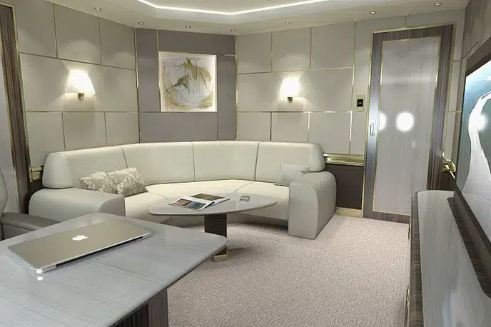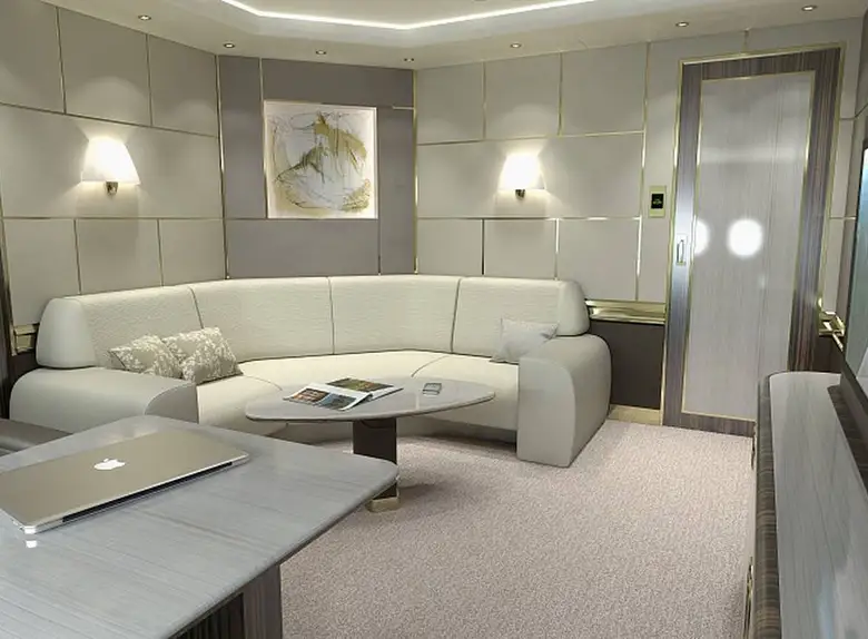 - Multiple luxurious seating zones with lie-flat beds.