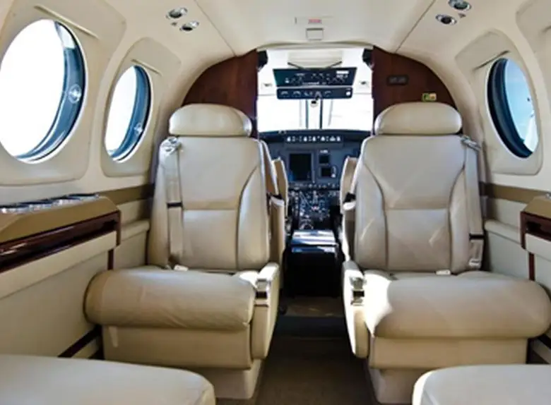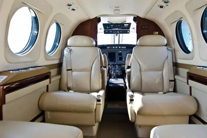 King Air C90GTi DIMRB accommodates up to 6 passengers. The baggage compartment volume of 1.38 m³ can hold up to 4 large suitcases . The maximum flight range reaches 2446 km, depending on payload and weather conditions.
