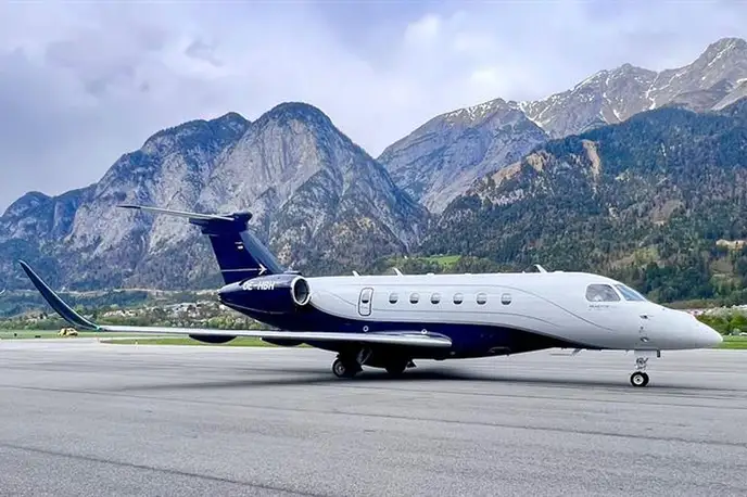 Embraer Praetor 600 OE-HBH (SPARFELL Luftfahrt GmbH), Innsbruck Airport is premium Super Light Jet jet for 9 passengers with a range of 7441 km. verified aircraft, transparent pricing, real photos and signature JETVIP ratings. Model ratings: Reliability — 87/100, Comfort — 88/100, Popularity — 4.6/5.
