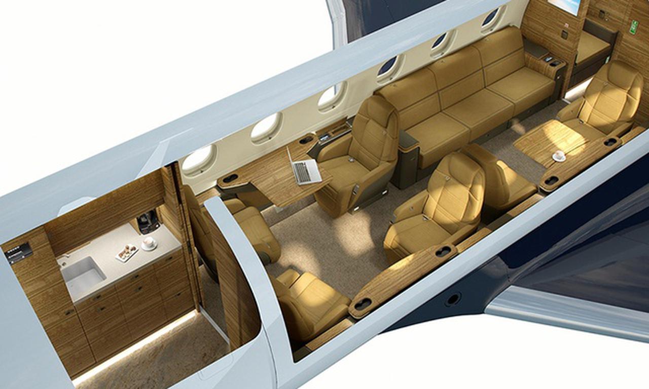 Praetor 600 OE-HPL accommodates up to 9 passengers. The baggage compartment volume of 4.8 m³ can hold up to 14 large suitcases . The maximum flight range reaches 7441 km, depending on payload and weather conditions.