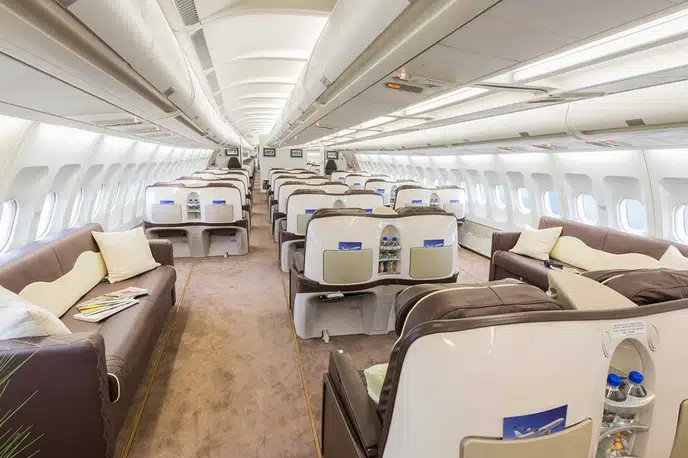 - Spacious and Comfortable Cabin: The wide fuselage provides a spacious cabin with two aisles, creating a comfortable atmosphere even during long flights. Passengers can enjoy ample legroom and comfortable seating.