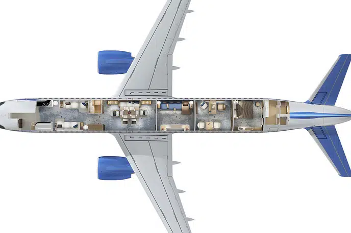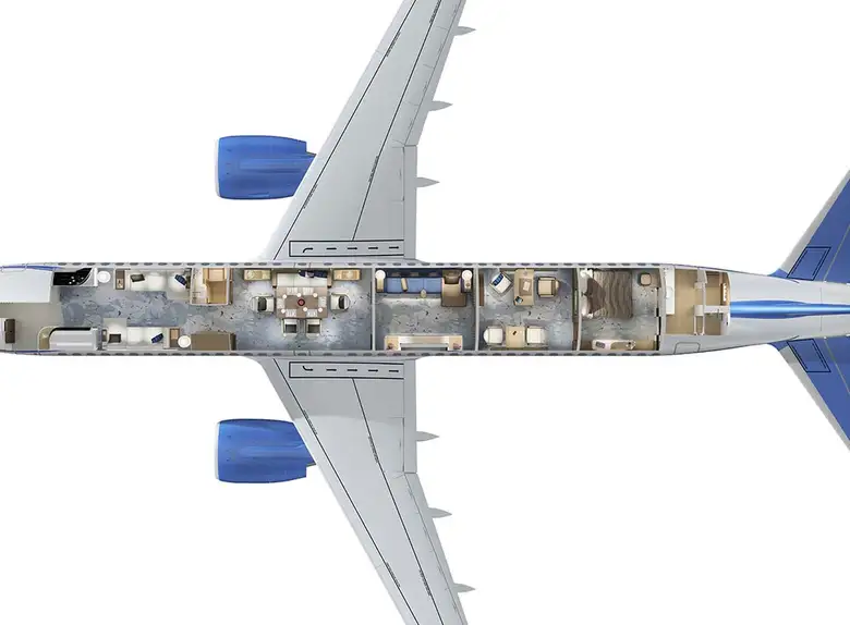 - Unrivaled Cabin Space: The ACJ TwoTwenty boasts the largest cabin in its class, providing owners and passengers with unprecedented opportunities to create a bespoke interior. It can accommodate versatile lounge areas, executive offices, private suites, bathrooms, and even entertainment centers, ensuring maximum comfort in flight.