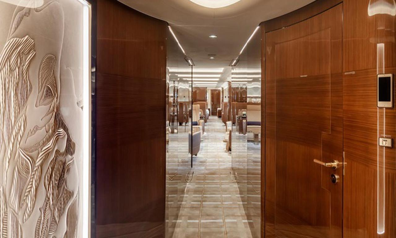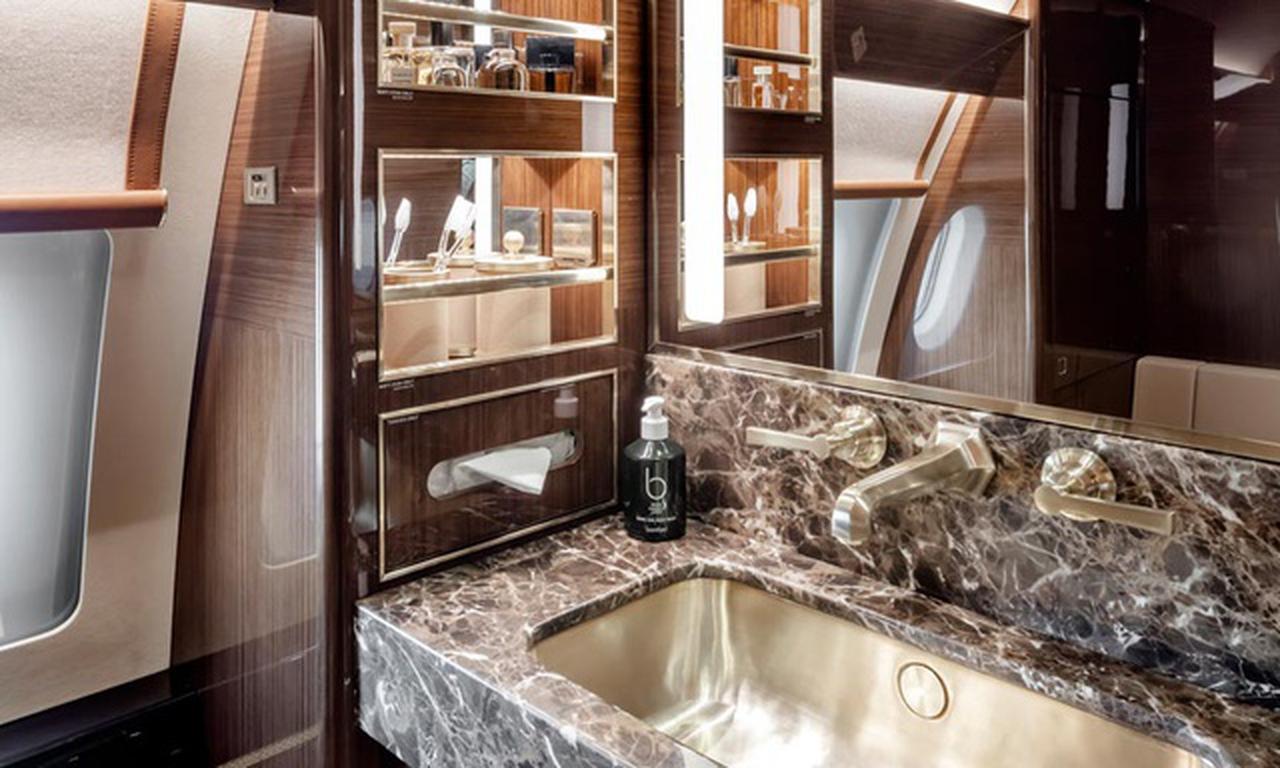 Available onboard amenities include Cabin crew , Entertainment system , Flight attendant required , Hot meal , Lavatory , Pets allowed , Satellite phone , Shower , Smoking allowed , Wi-Fi (Satellite based) .