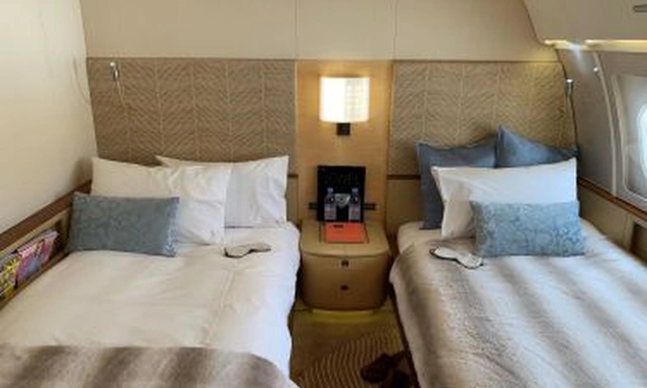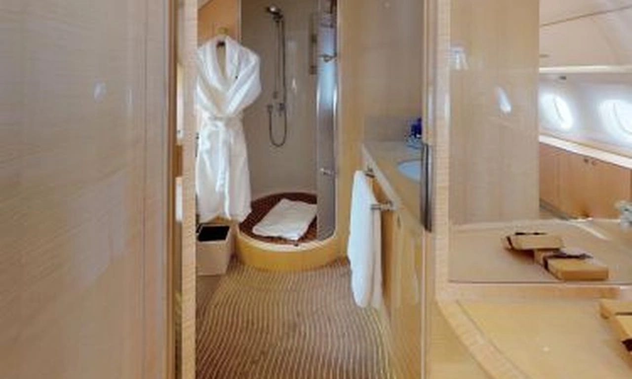 Available onboard amenities include Cabin crew , Hot meal , Lavatory , Shower .