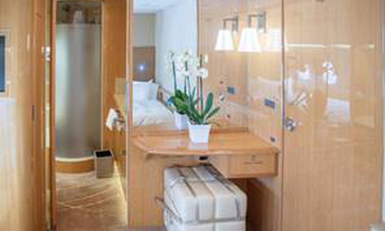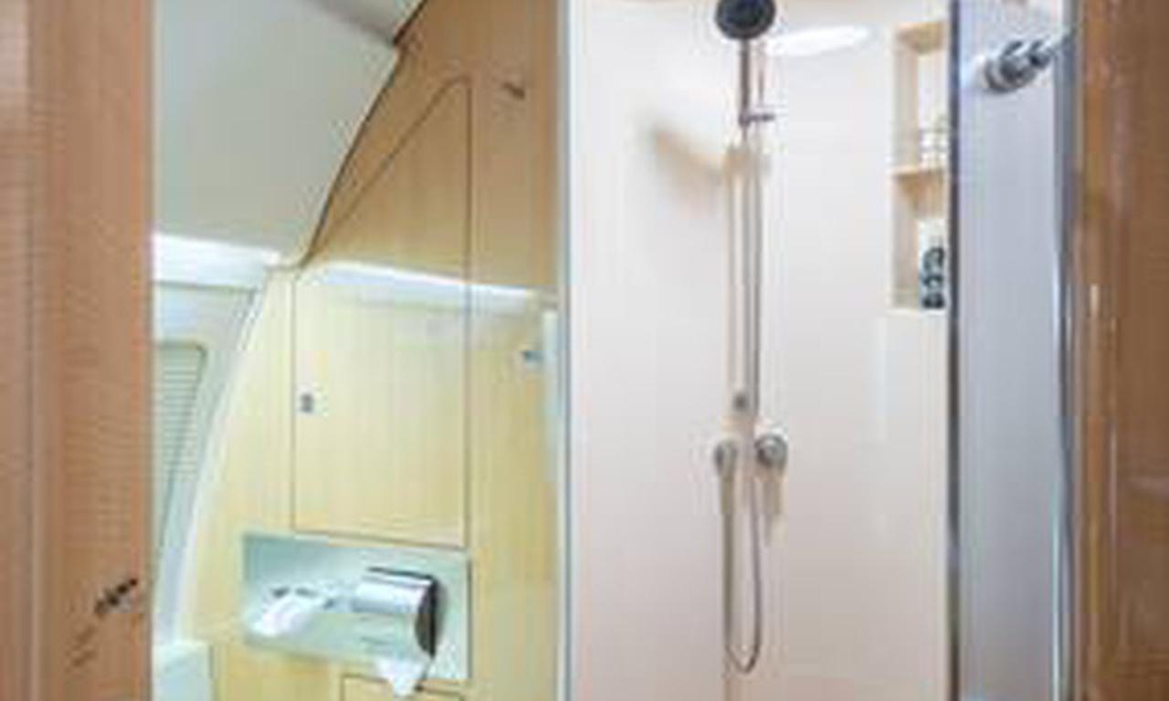 Available onboard amenities include Cabin crew , Entertainment system , Hot meal , Lavatory , Satellite phone , Shower .