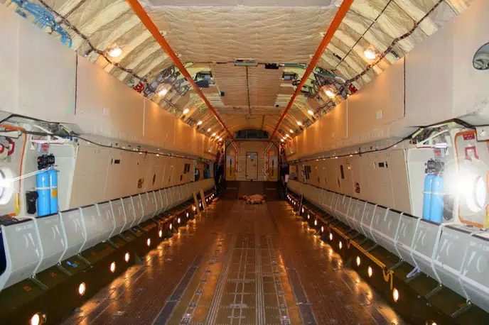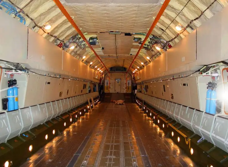 The very design of the aircraft is ideally suited to the transportation of special cargo, where difficulties begin even during loading. It makes it possible to change the ground clearance and the angle of the fuselage. In such conditions, it becomes much easier to load oversized cargo or any large vehicle. Also, the aircraft has 2 hatches for transport in both parts. The volume of the cargo compartment of the transport aircraft Ruslan is 750 cubic meters. The cargo compartment is equipped with two electric winches with a thrust of up to 3 tons and four electric hoists with a lifting capacity of each up to 8 tons. The control is carried out by a crew of up to 9 people. The escort compartment can accommodate up to 28 people. The flight range depends on the load. Without cargo, it can fly over 14,000 km without landing. The landing gear design allows you to land on unpaved runways.