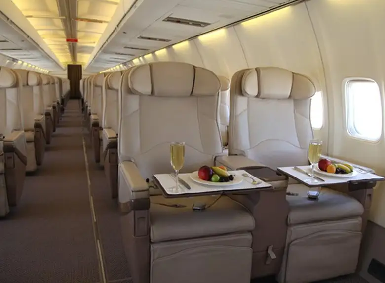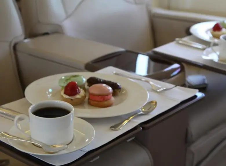 Available onboard amenities include Cabin crew , Entertainment system , Hot meal , Lavatory , Satellite phone .