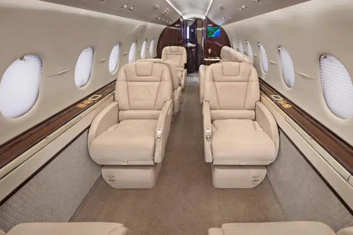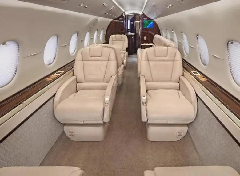 - Spacious Cabin: The Hawker 1000 boasts a large cabin for its class, typically accommodating 8 to 9 passengers in a comfortable executive configuration. It offers generous headroom and legroom, making it suitable for longer journeys.