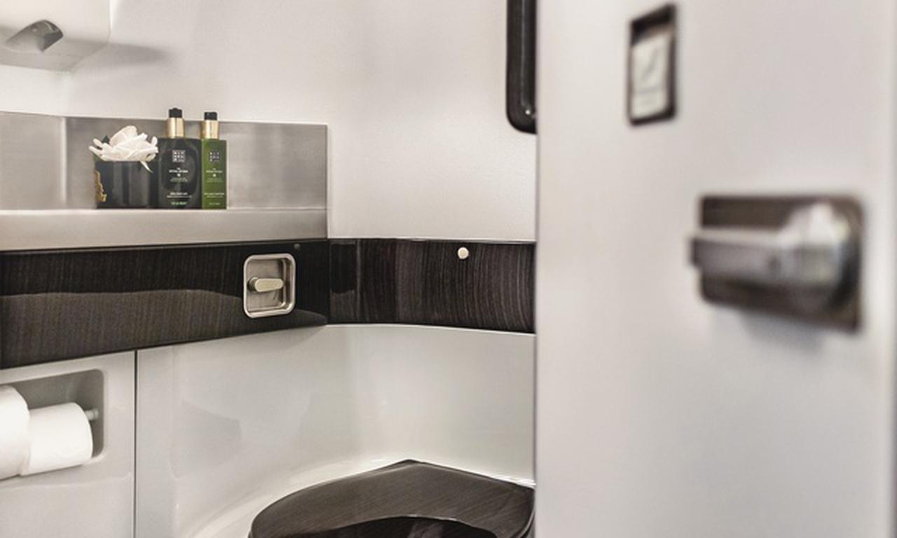 Available onboard amenities include Cabin crew , Hot meal , Lavatory .