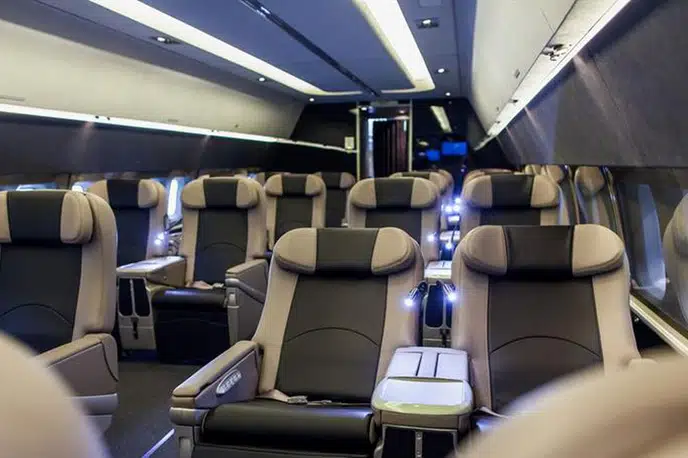 Passenger capacity: 40 to 80 (custom VIP configurations)