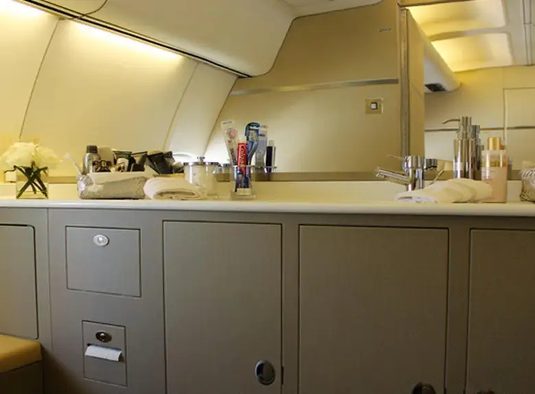 Available onboard amenities include Cabin crew , Entertainment system , Hot meal , Lavatory , Satellite phone .