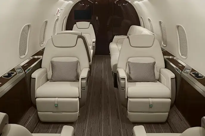 Challenger 350 LNJHH accommodates up to 8 passengers. The baggage compartment volume of 3.0 m³ can hold up to 8 large suitcases . The maximum flight range reaches 5926 km, depending on payload and weather conditions.