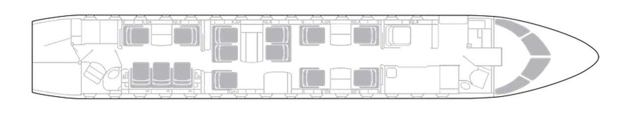 Global 6000 9H-JBJ accommodates up to 14 passengers. The baggage compartment volume of 5.52 m³ can hold up to 16 large suitcases . The maximum flight range reaches 11472 km, depending on payload and weather conditions.