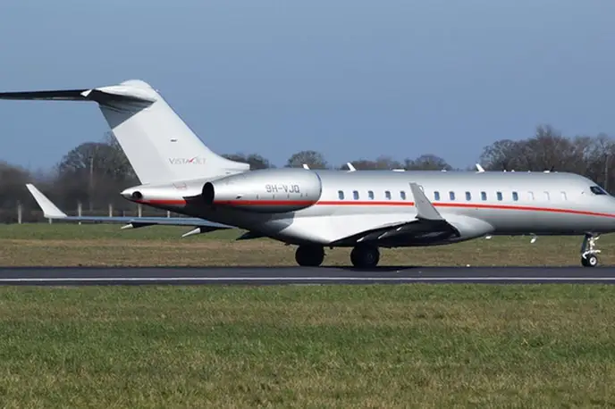 Bombardier Global 6000 9H-VJQ (Vista), Milano Linate Airport is premium Ultra Long Range jet for 14 passengers with a range of 11472 km. verified aircraft, transparent pricing, real photos and signature JETVIP ratings. Model ratings: Reliability — 87/100, Comfort — 96/100, Popularity — 4.7/5.