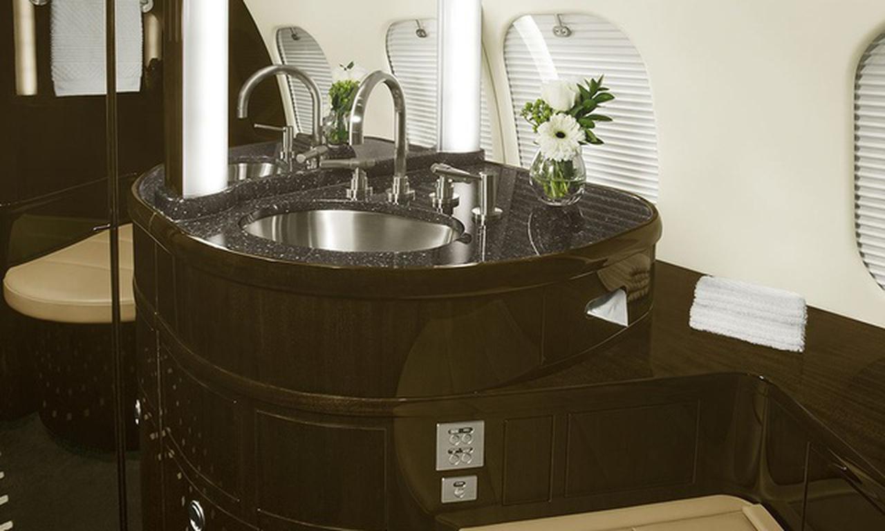 Available onboard amenities include Cabin crew , Entertainment system , Hot meal , Lavatory , Pets allowed , Satellite phone .