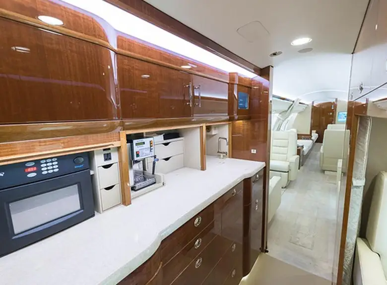 Global 6000 OE-LDR accommodates up to 14 passengers. The baggage compartment volume of 5.52 m³ can hold up to 16 large suitcases . The maximum flight range reaches 11472 km, depending on payload and weather conditions.