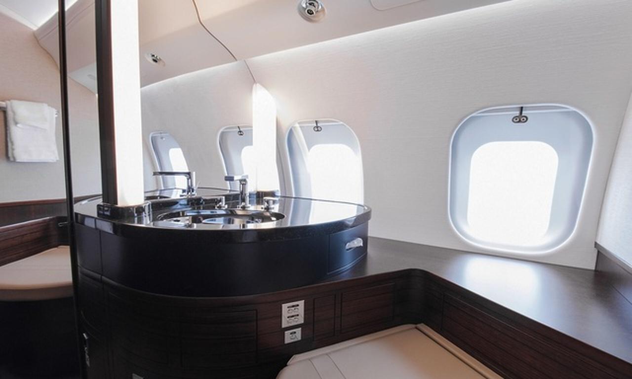 Available onboard amenities include Cabin crew , Hot meal , Lavatory , Owner's approval required , Satellite phone .