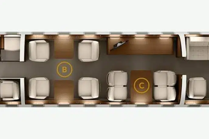 Productivity: Onboard Wi-Fi, conference room setup, and a quiet cabin enable seamless business in the sky.