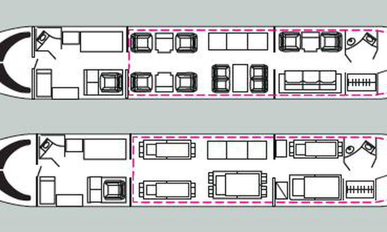 Global Express D-AFAU accommodates up to 10 passengers. The baggage compartment volume of 5.66 m³ can hold up to 16 large suitcases . The maximum flight range reaches 11390 km, depending on payload and weather conditions.