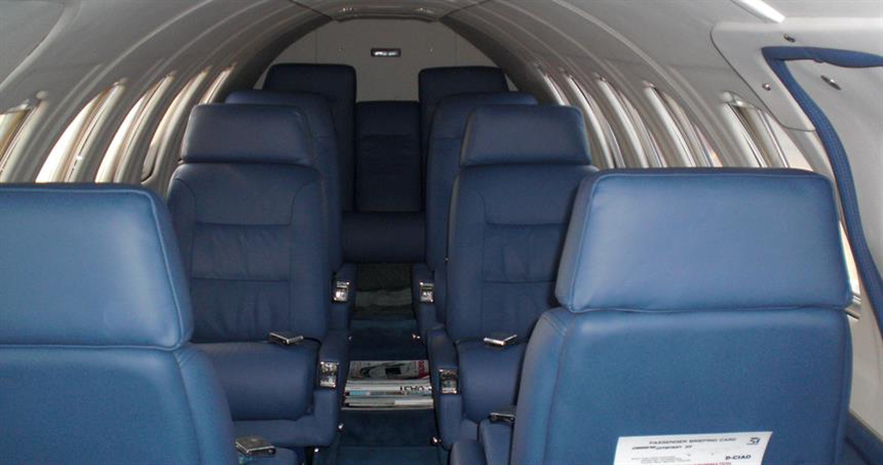Citation II D-CIAO accommodates up to 11 passengers. The baggage compartment volume of 1.95 m³ can hold up to 5 large suitcases . The maximum flight range reaches 3232 km, depending on payload and weather conditions.