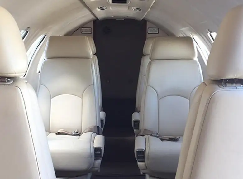 Citation II N132GS accommodates up to 8 passengers. The baggage compartment volume of 1.95 m³ can hold up to 5 large suitcases . The maximum flight range reaches 3232 km, depending on payload and weather conditions.