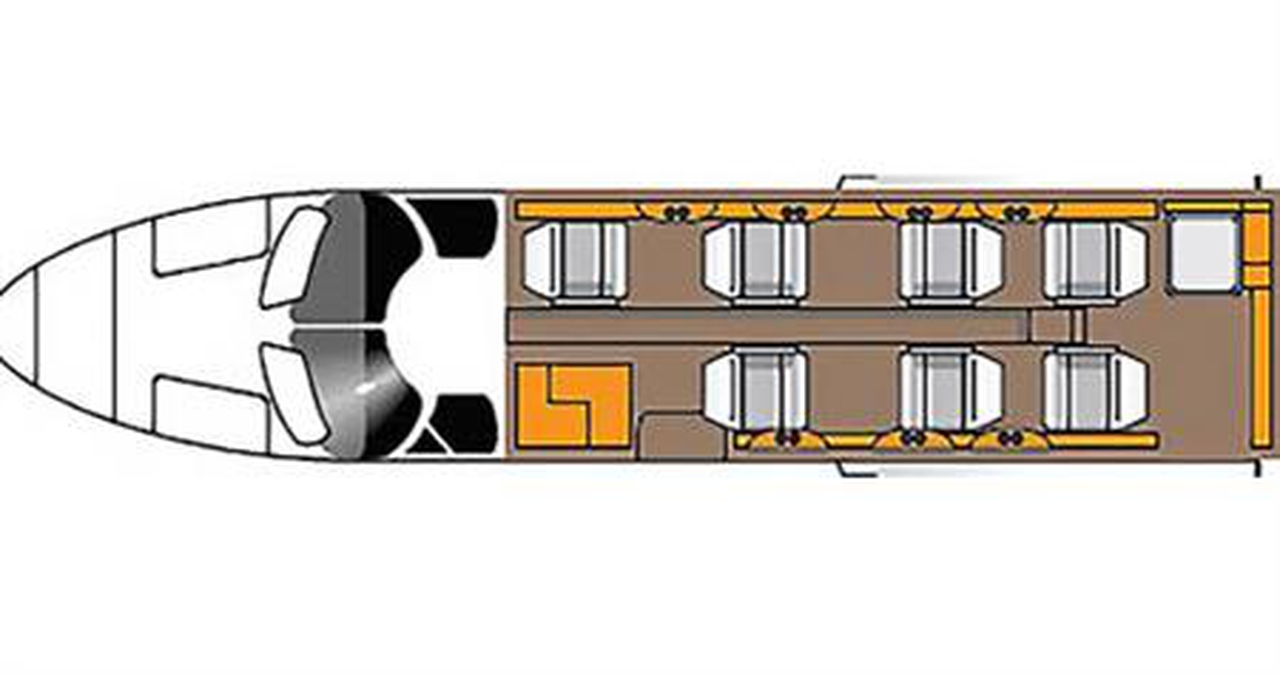 Citation II N802Q accommodates up to 8 passengers. The baggage compartment volume of 1.95 m³ can hold up to 5 large suitcases . The maximum flight range reaches 3232 km, depending on payload and weather conditions.