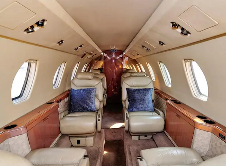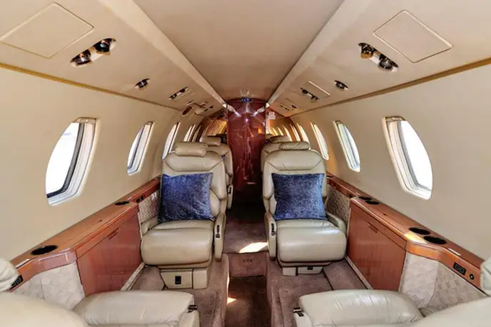 Citation III 4X-CZA accommodates up to 8 passengers. The baggage compartment volume of 1.73 m³ can hold up to 5 large suitcases . The maximum flight range reaches 4500 km, depending on payload and weather conditions.