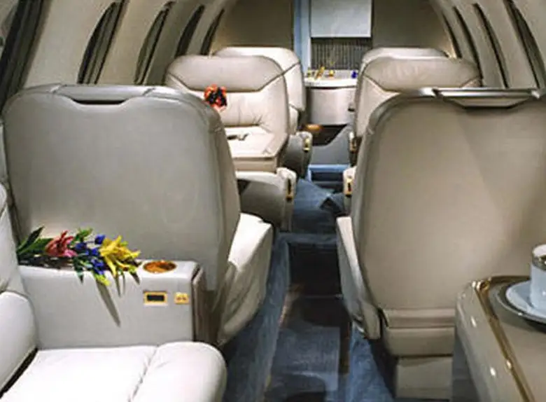 Citation III D-CCEU accommodates up to 9 passengers. The baggage compartment volume of 1.73 m³ can hold up to 5 large suitcases . The maximum flight range reaches 4500 km, depending on payload and weather conditions.