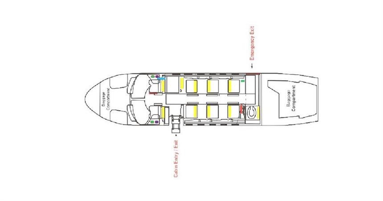 Citation CJ2 9A-JET accommodates up to 6 passengers. The baggage compartment volume of 1.84 m³ can hold up to 5 large suitcases . The maximum flight range reaches 2990 km, depending on payload and weather conditions.