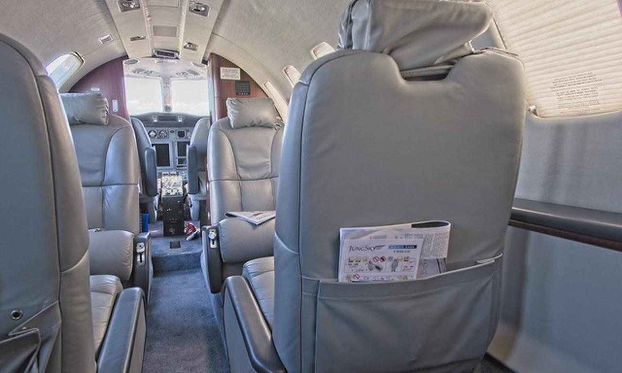 Citation CJ2 9A-JSC accommodates up to 6 passengers. The baggage compartment volume of 1.84 m³ can hold up to 5 large suitcases . The maximum flight range reaches 2990 km, depending on payload and weather conditions.