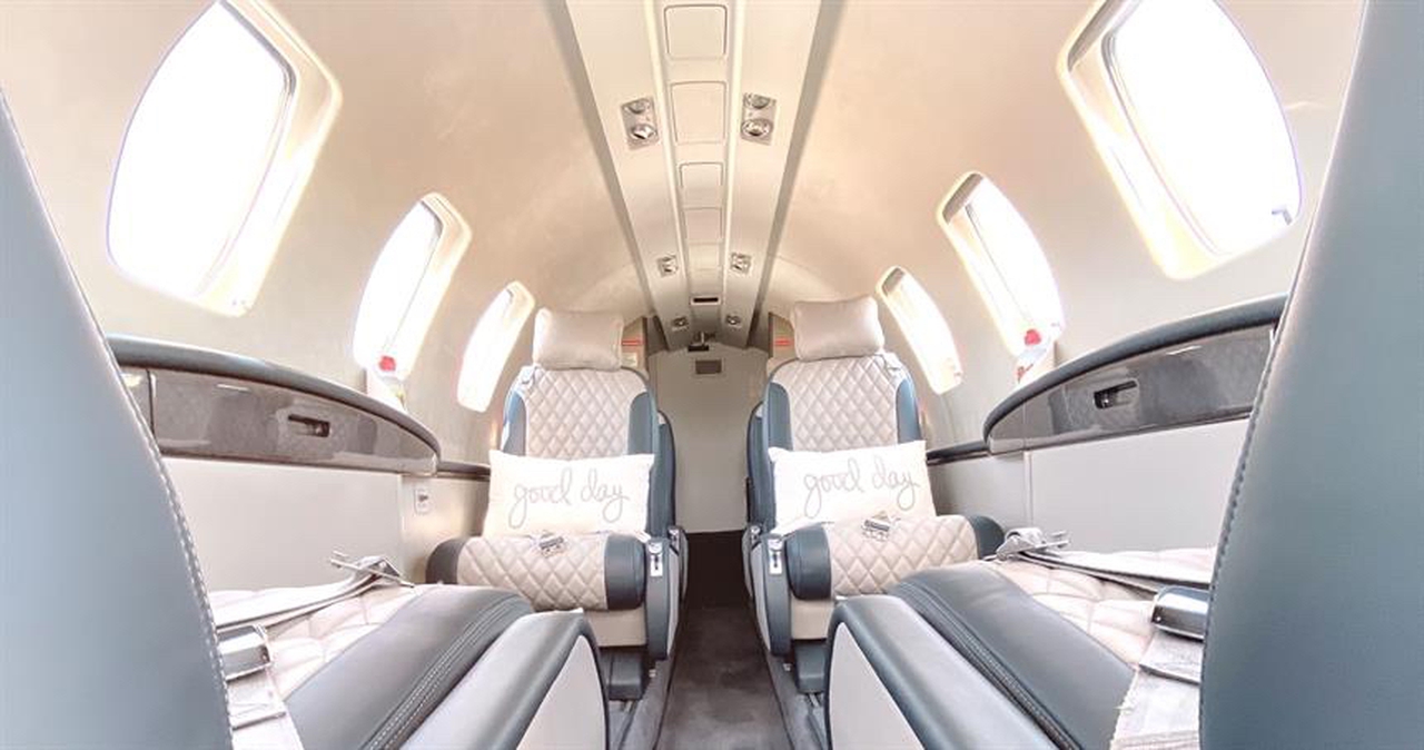 Citation CJ2 D-IKCG accommodates up to 6 passengers. The baggage compartment volume of 1.84 m³ can hold up to 5 large suitcases . The maximum flight range reaches 2990 km, depending on payload and weather conditions.