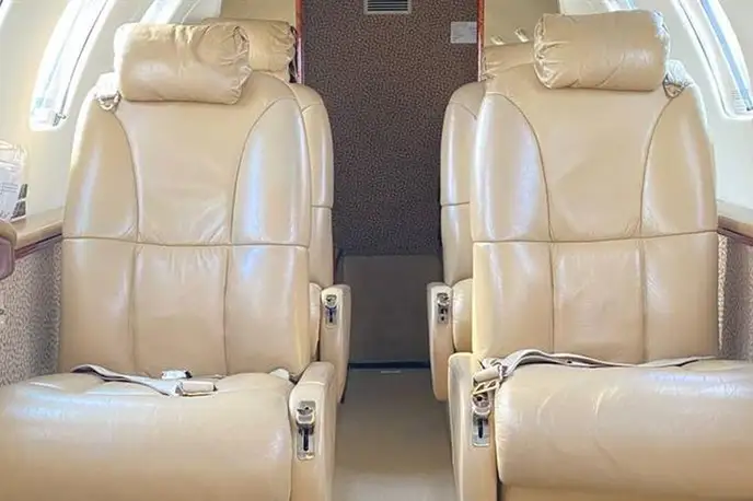 Citation CJ2 F-HJJV accommodates up to 6 passengers. The baggage compartment volume of 1.84 m³ can hold up to 5 large suitcases . The maximum flight range reaches 2990 km, depending on payload and weather conditions.