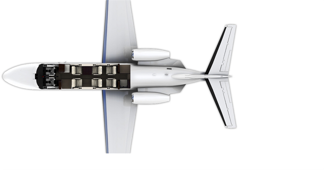 Citation CJ2+ D-IEGO accommodates up to 6 passengers. The baggage compartment volume of 2.1 m³ can hold up to 6 large suitcases . The maximum flight range reaches 2987 km, depending on payload and weather conditions.