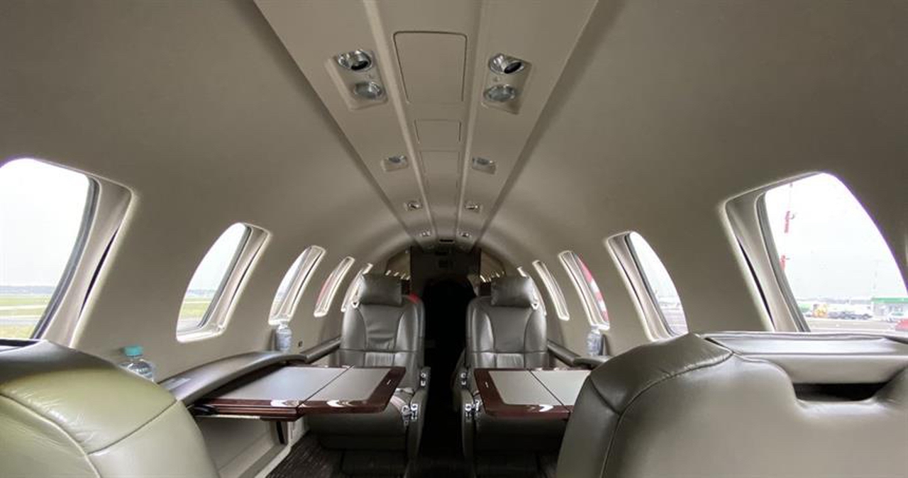 Citation CJ2+ D-ILOU accommodates up to 6 passengers. The baggage compartment volume of 2.1 m³ can hold up to 6 large suitcases . The maximum flight range reaches 2987 km, depending on payload and weather conditions.