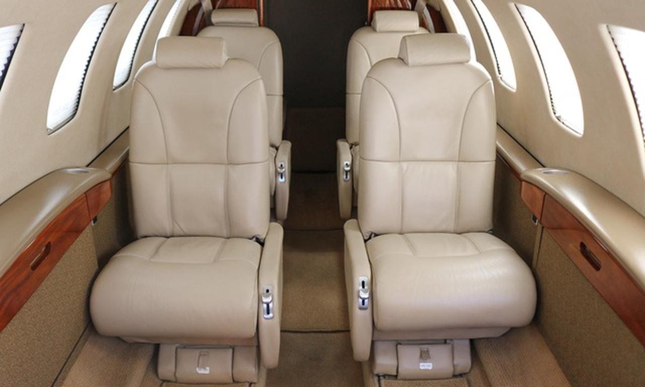 Citation CJ2+ N35CT accommodates up to 6 passengers. The baggage compartment volume of 2.1 m³ can hold up to 6 large suitcases . The maximum flight range reaches 2987 km, depending on payload and weather conditions.