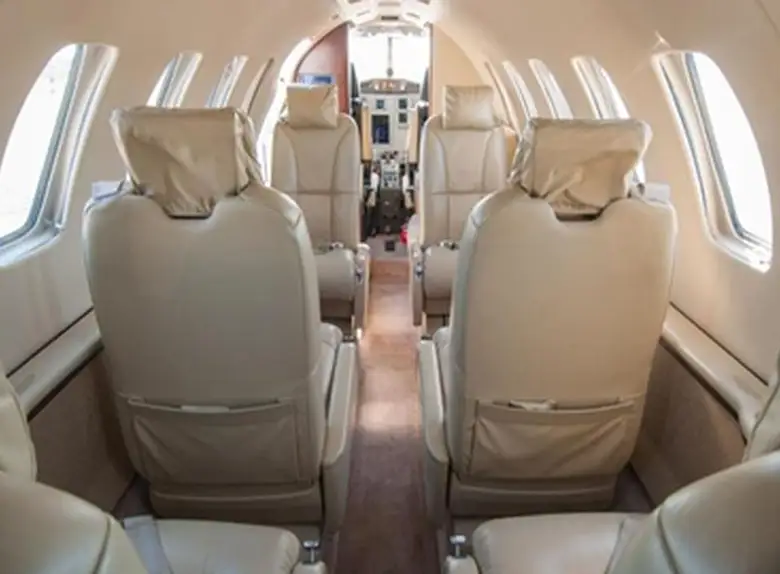 Citation CJ2+ N525NG accommodates up to 6 passengers. The baggage compartment volume of 2.1 m³ can hold up to 6 large suitcases . The maximum flight range reaches 2987 km, depending on payload and weather conditions.
