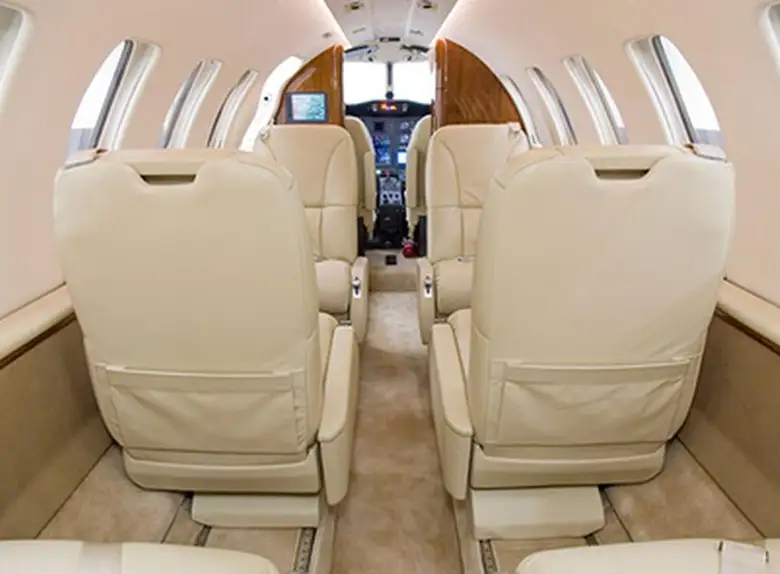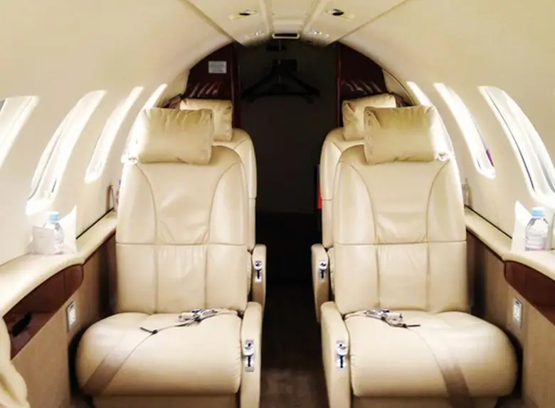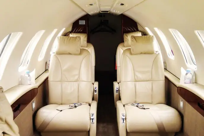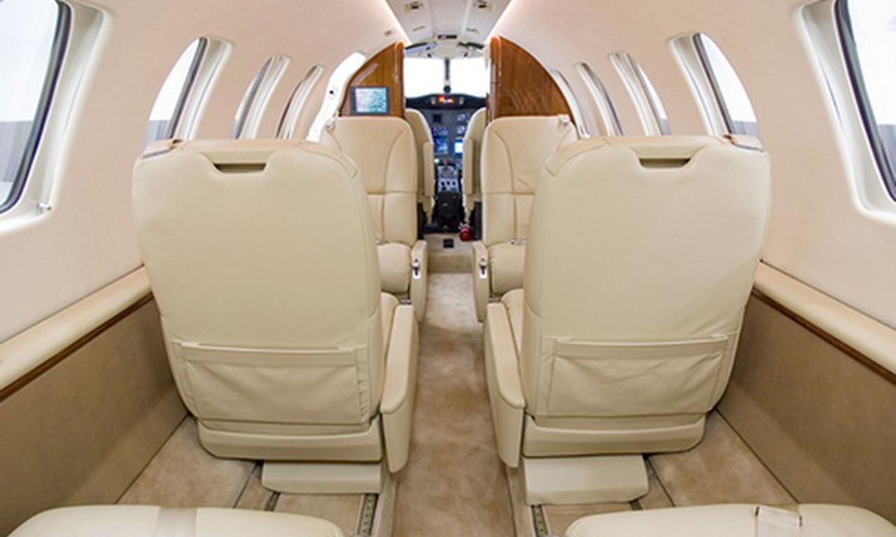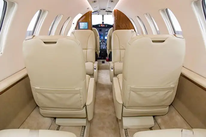 Citation CJ2+ OE-FOA accommodates up to 6 passengers. The baggage compartment volume of 2.1 m³ can hold up to 6 large suitcases . The maximum flight range reaches 2987 km, depending on payload and weather conditions.