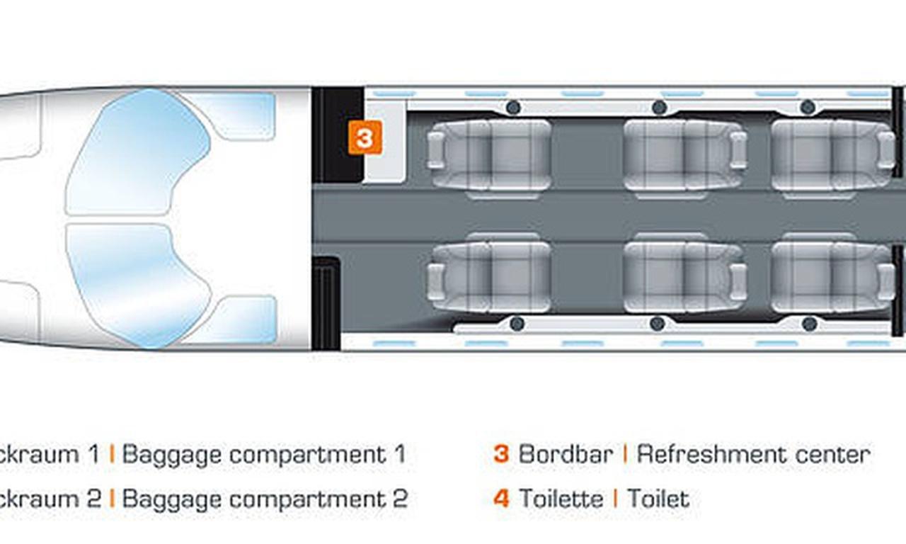 Citation CJ2+ OE-FPM accommodates up to 6 passengers. The baggage compartment volume of 2.1 m³ can hold up to 6 large suitcases . The maximum flight range reaches 2987 km, depending on payload and weather conditions.