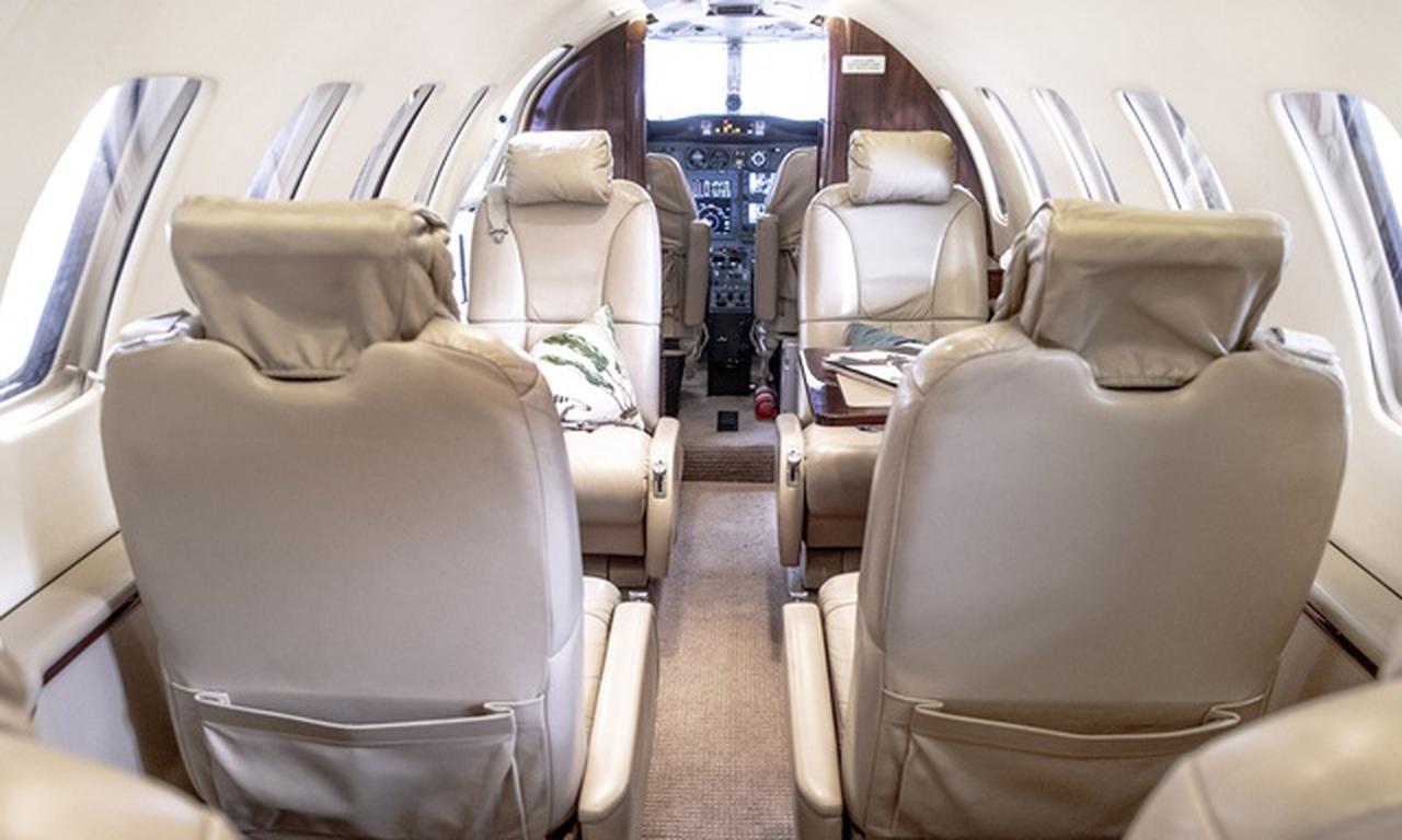 Citation CJ2+ SE-RIN accommodates up to 6 passengers. The baggage compartment volume of 2.1 m³ can hold up to 6 large suitcases . The maximum flight range reaches 2987 km, depending on payload and weather conditions.