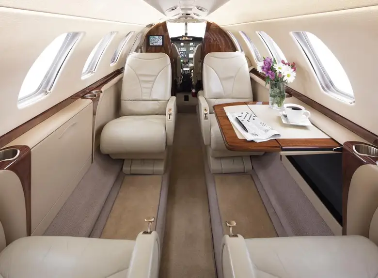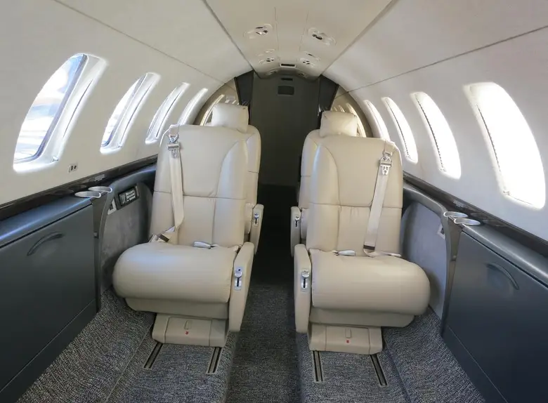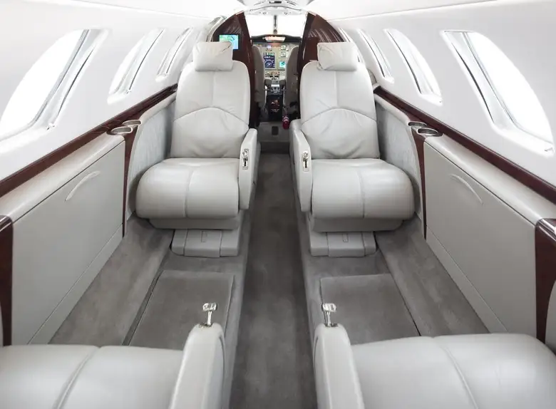 - Comfortable Cabin: Typically configured to seat 6-8 passengers in a comfortable and well-appointed cabin, often in a center club arrangement. The cabin offers ample headroom and legroom for a light jet.