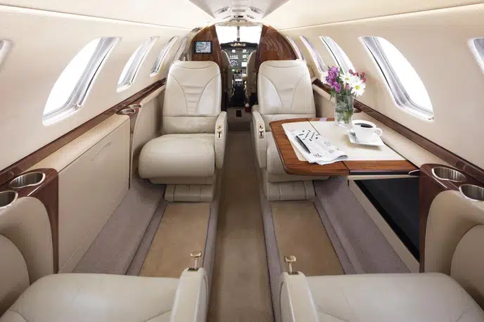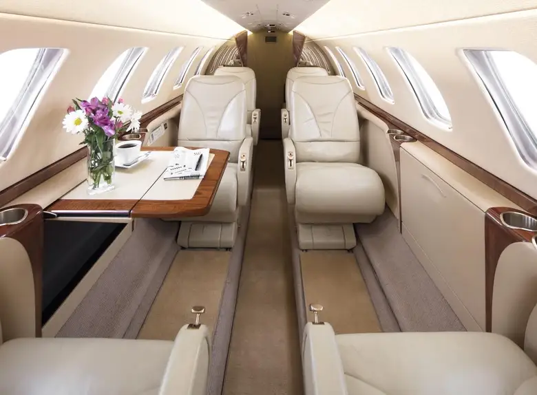- Baggage Capacity: Offers a respectable baggage capacity (around 65-74 cubic feet) for a light jet, accommodating luggage for all passengers.
