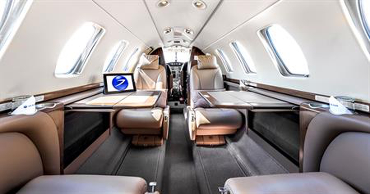 Citation CJ3 F-HJSL accommodates up to 6 passengers. The baggage compartment volume of 1.8 m³ can hold up to 5 large suitcases . The maximum flight range reaches 3475 km, depending on payload and weather conditions.