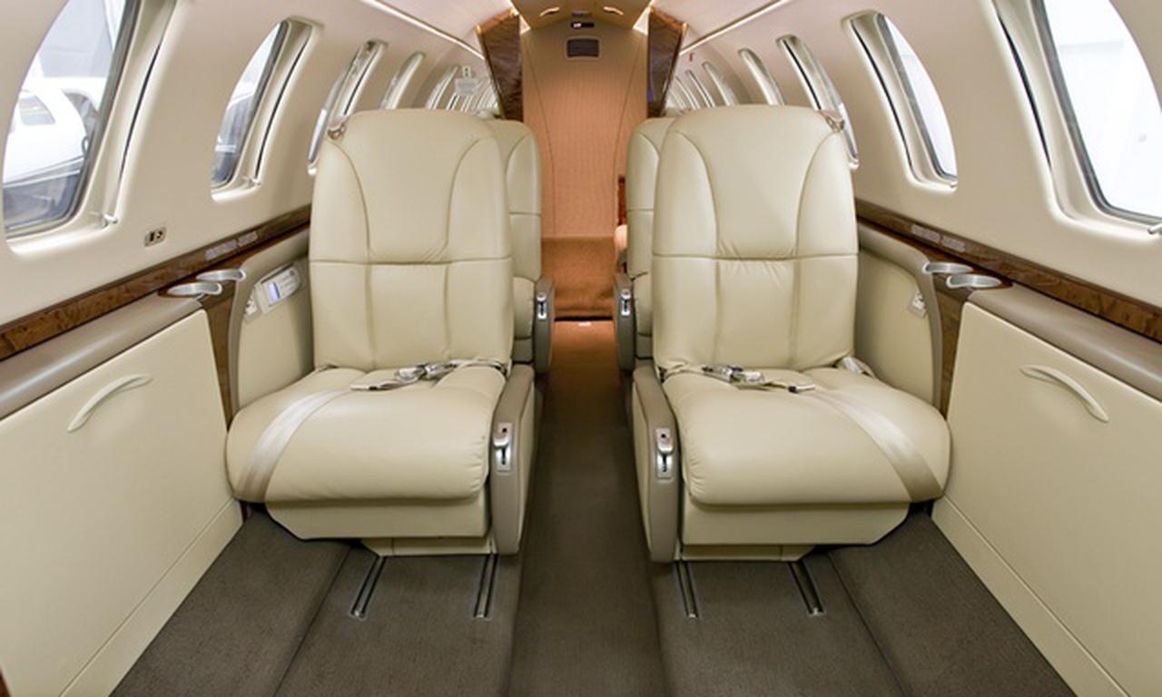 Citation CJ3 F-HTSB accommodates up to 6 passengers. The baggage compartment volume of 1.8 m³ can hold up to 5 large suitcases . The maximum flight range reaches 3475 km, depending on payload and weather conditions.