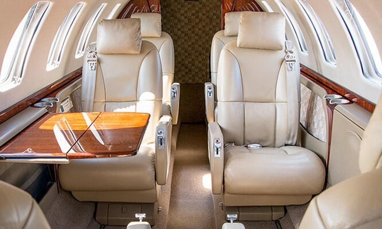 Citation CJ3 N357N accommodates up to 8 passengers. The baggage compartment volume of 1.8 m³ can hold up to 5 large suitcases . The maximum flight range reaches 3475 km, depending on payload and weather conditions.