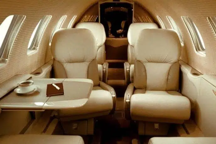 - The cabin often features a club seating arrangement, fold-out tables, and a belted lavatory in the aft. There are typically 14 windows providing natural light.