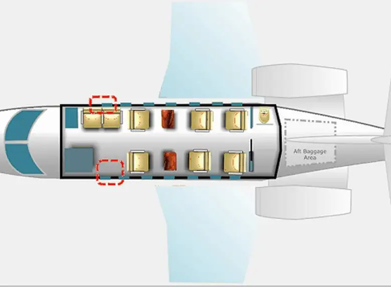 Citation Encore+ N560CL accommodates up to 8 passengers. The baggage compartment volume of 1.45 m³ can hold up to 4 large suitcases . The maximum flight range reaches 3000 km, depending on payload and weather conditions.