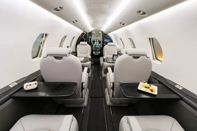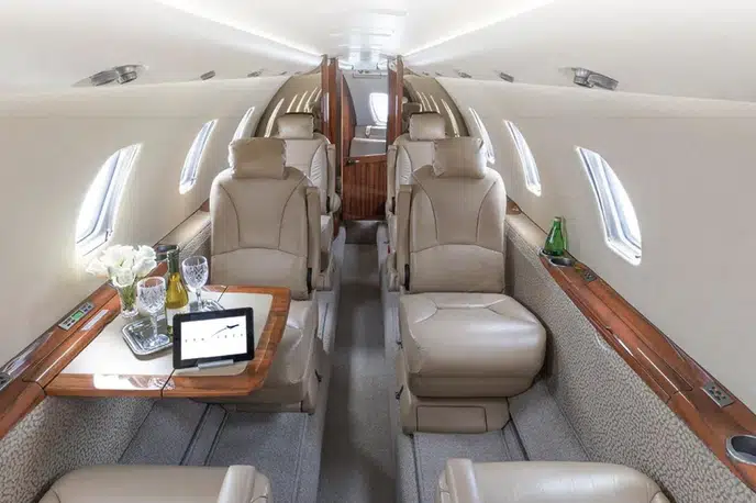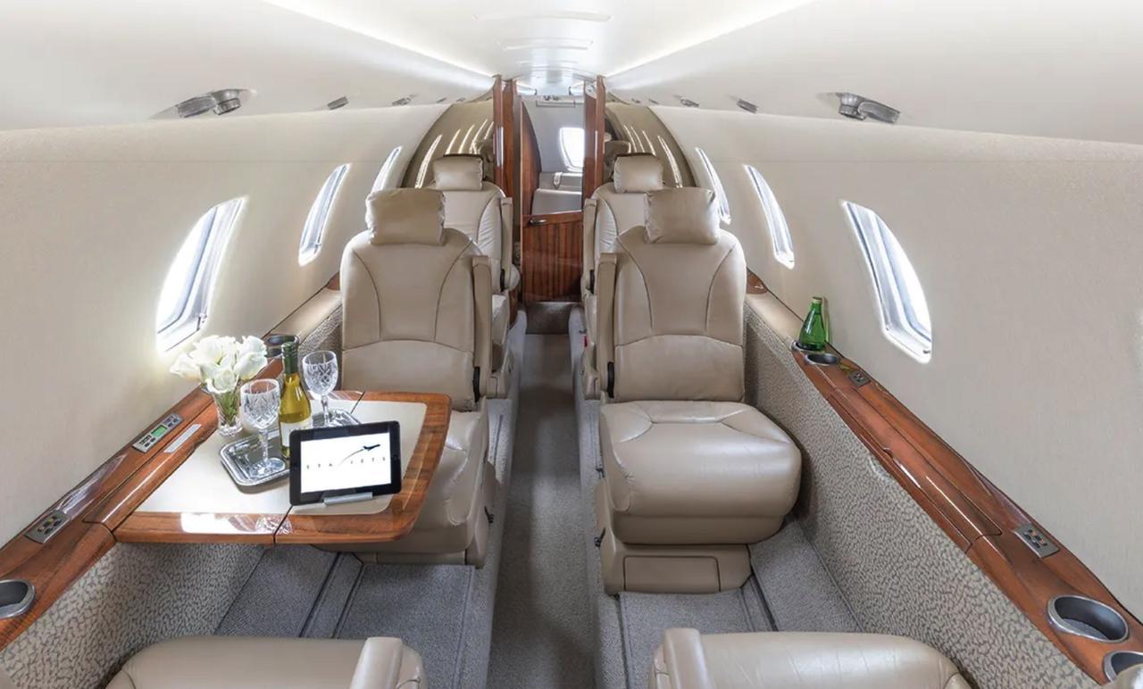 Comfort and Amenities: The cabin typically features executive leather seating, fold-out tables, a fully enclosed lavatory, and a refreshment center. Many models are equipped with entertainment systems and Wi-Fi connectivity to enhance the passenger experience.