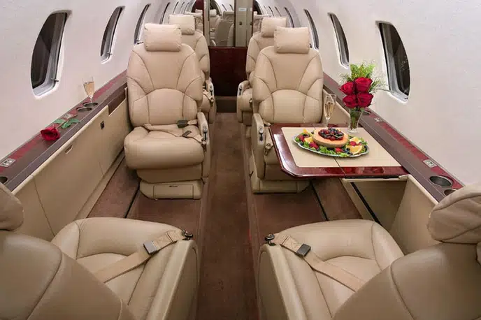 The Citation Excel has typical seating for 8 pax passengers.