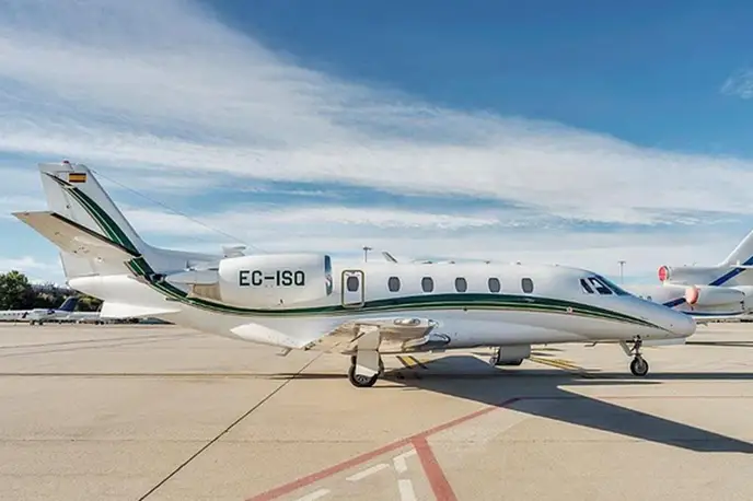 Cessna Aircraft Citation Excel EC-ISQ (NordJet Airlines), Vitoria Airport is premium Super Light Jet jet for 8 passengers with a range of 3499 km. verified aircraft, transparent pricing, real photos and signature JETVIP ratings. Model ratings: Reliability — 74/100, Comfort — 82/100, Popularity — 4.1/5.